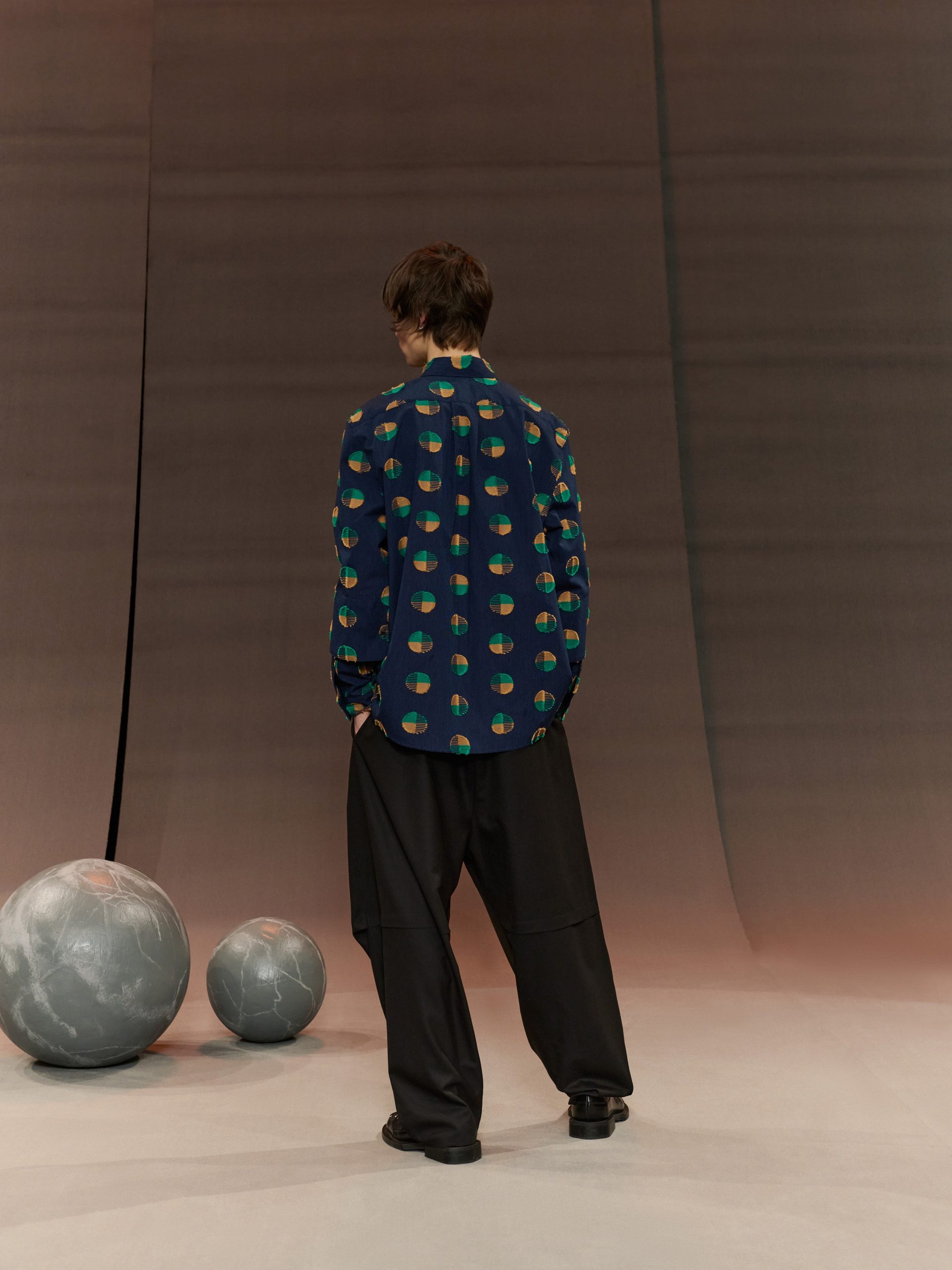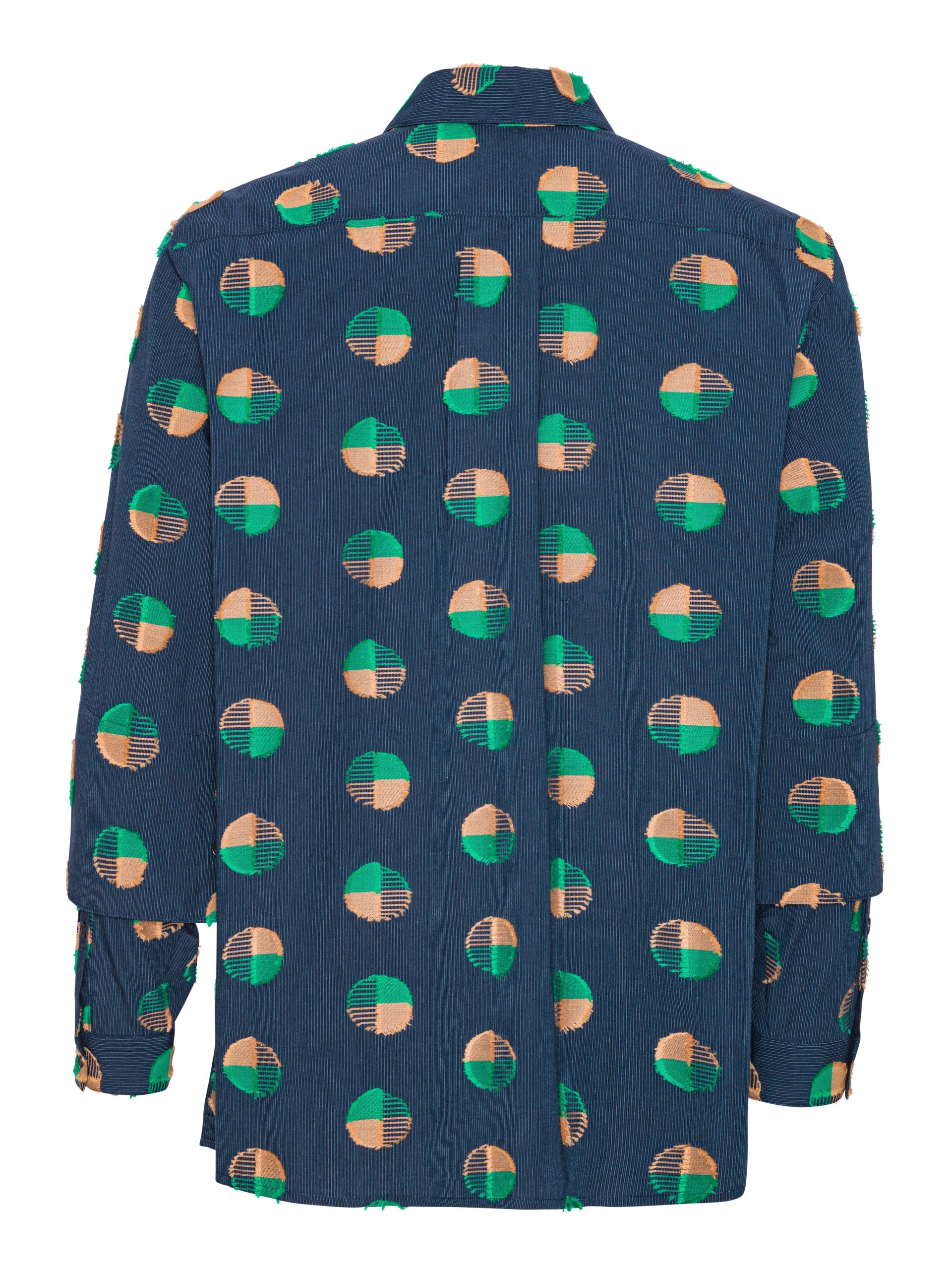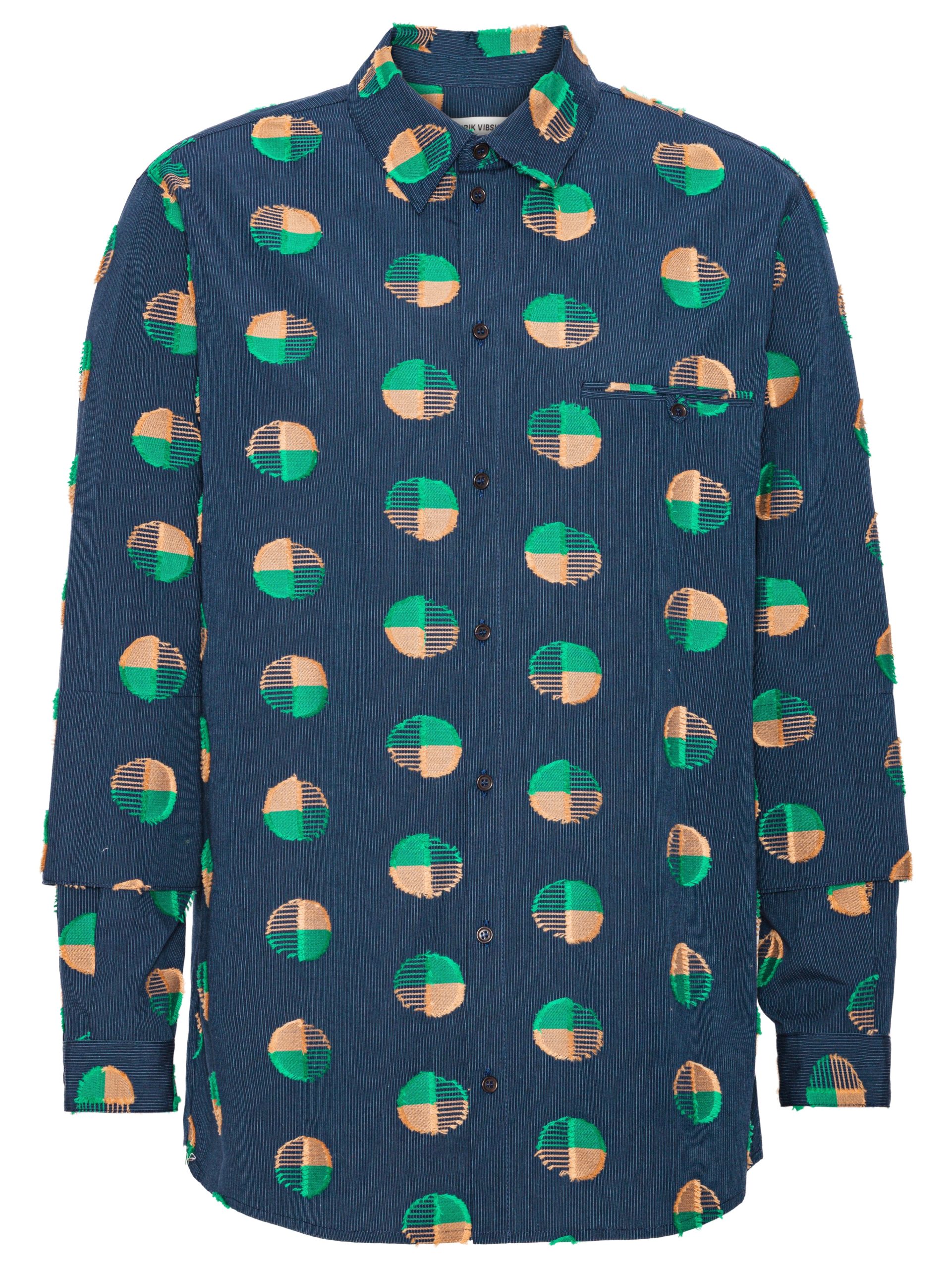 Signature fabric – This fabric is made in Portugal by Polopiqué, creative weavers dating back to 1935. It is specially developed with a Henrik Vibskov artwork, showcasing dots in a Fille Coupé technique.