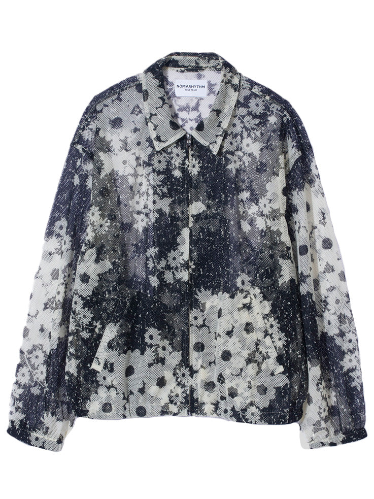 Floral Mesh Zip Blouson in Floral Noise Black