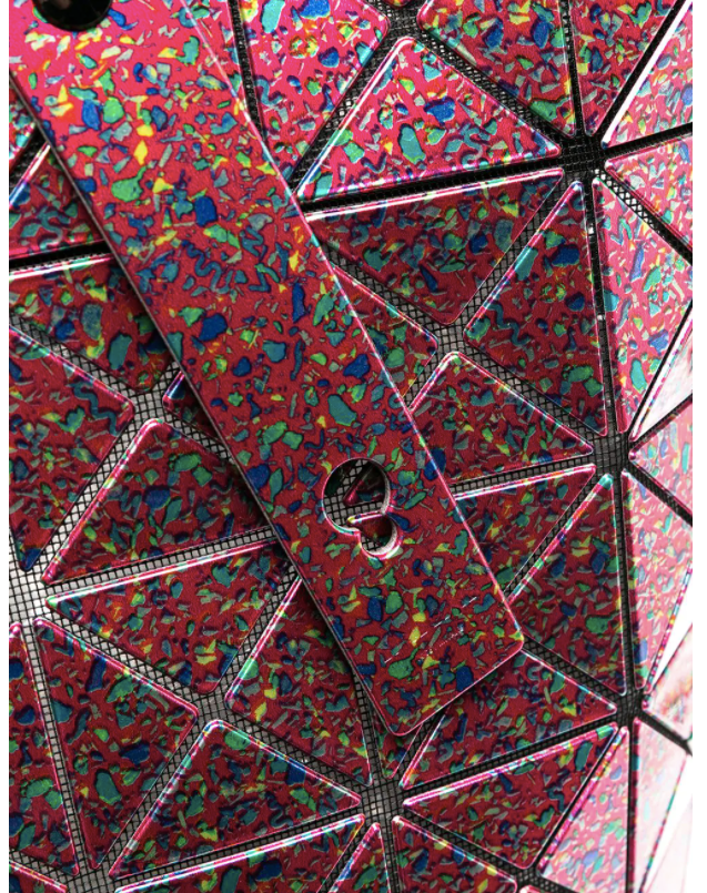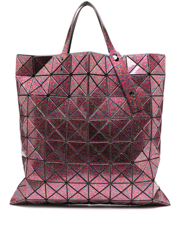 Large tote bag in Pink Mix from Bao Bao Issey Miyake featuring a geometric pattern, an internal logo patch, an open top design, top handles, a main internal compartment, an interior zipped compartment and a full lining.