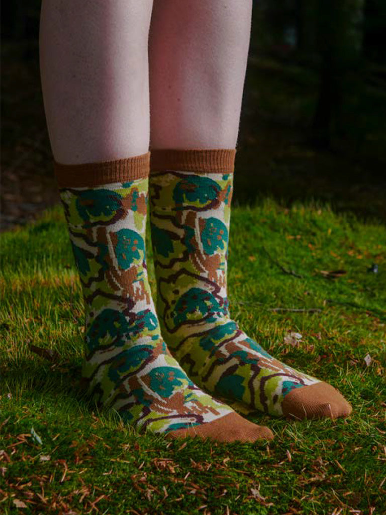Playground Flowers Socks Femme in Brown Green Spraycan