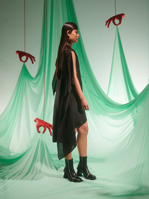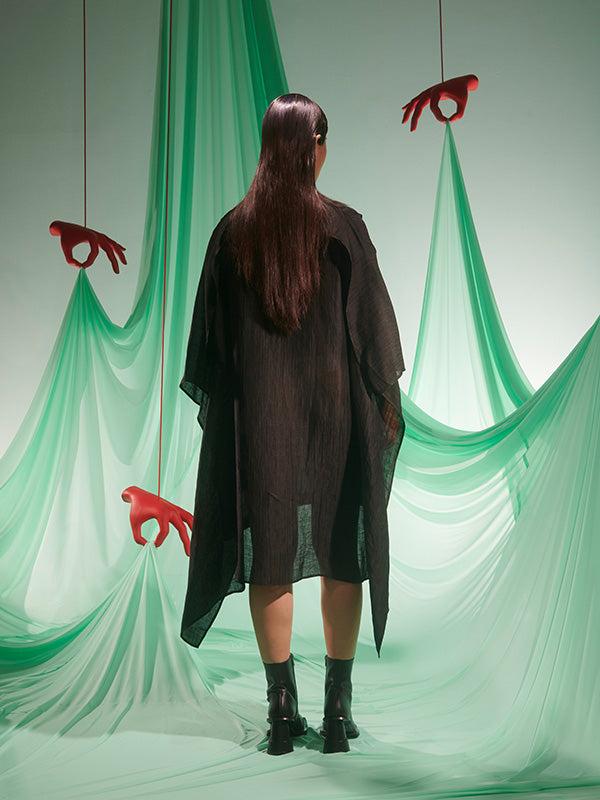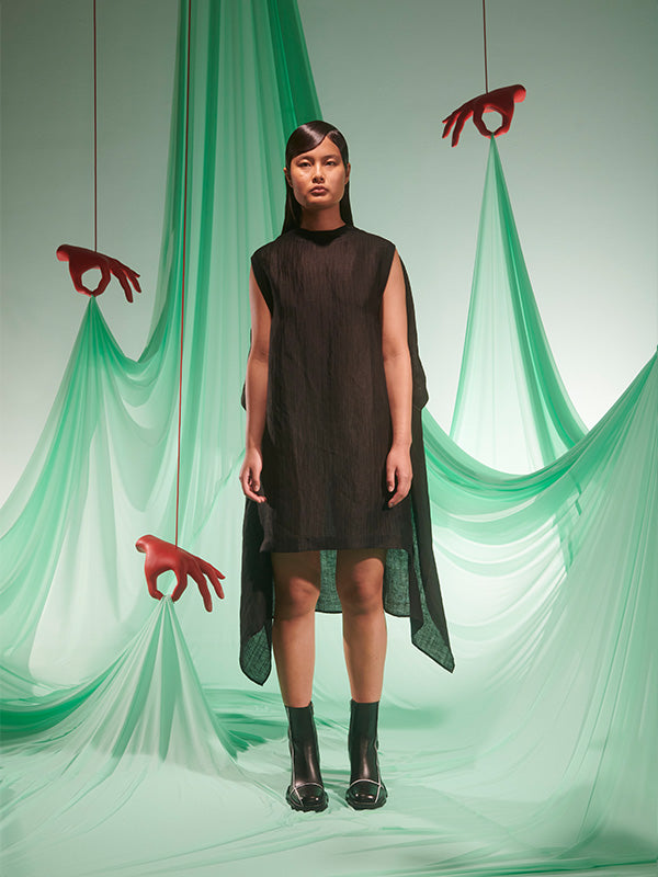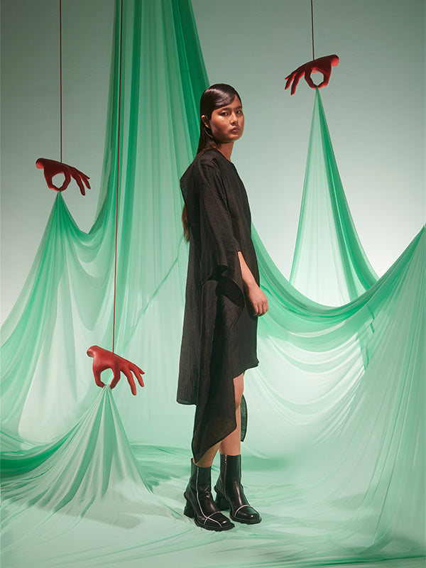 Uncut Silk Dress in Black