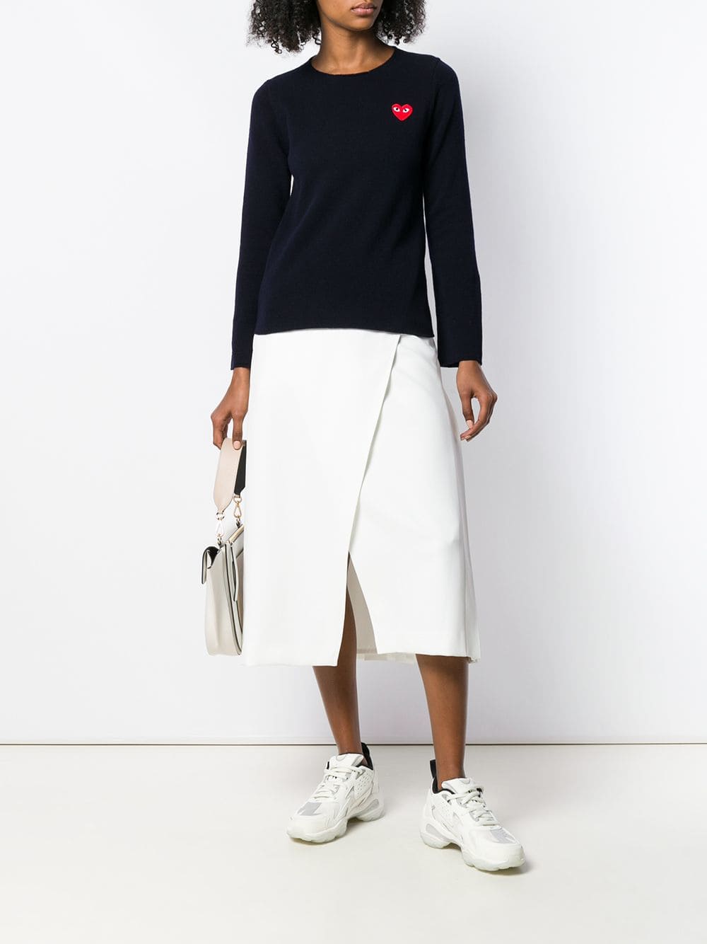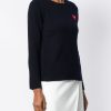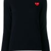 Navy blue wool heart patch jumper. Featuring a crew neck, long sleeves and a straight hem.