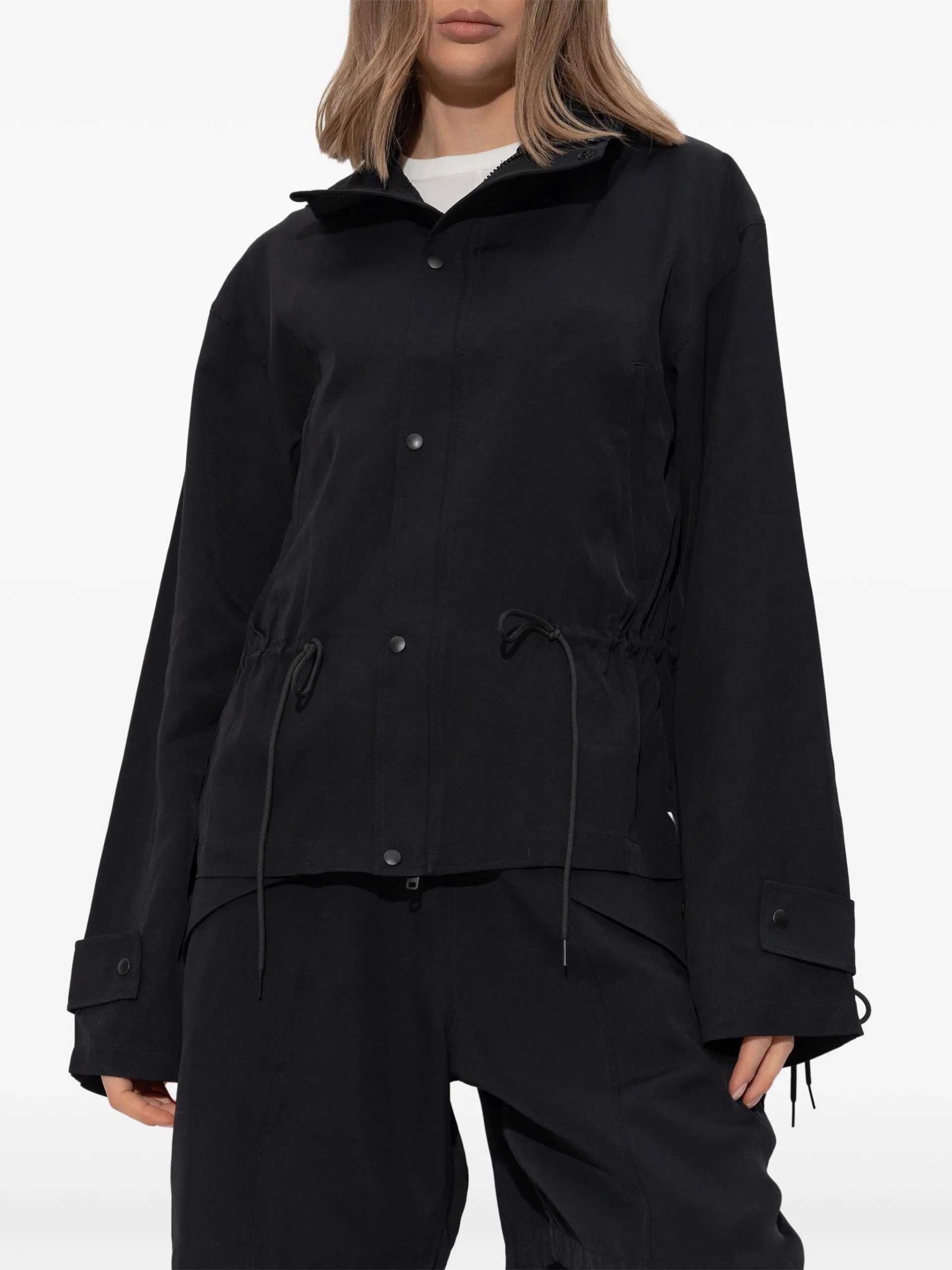 In the spirit of Y-3, the Y-3 Rayon Twill Hooded Top views sportswear through a fashion lens. It’s fabricated in rayon twill that has a soft, silky feel and elegant drape. The front zipper is hidden beneath a snap-closure front and a tiecord at the waist can be cinched to alter the shape.