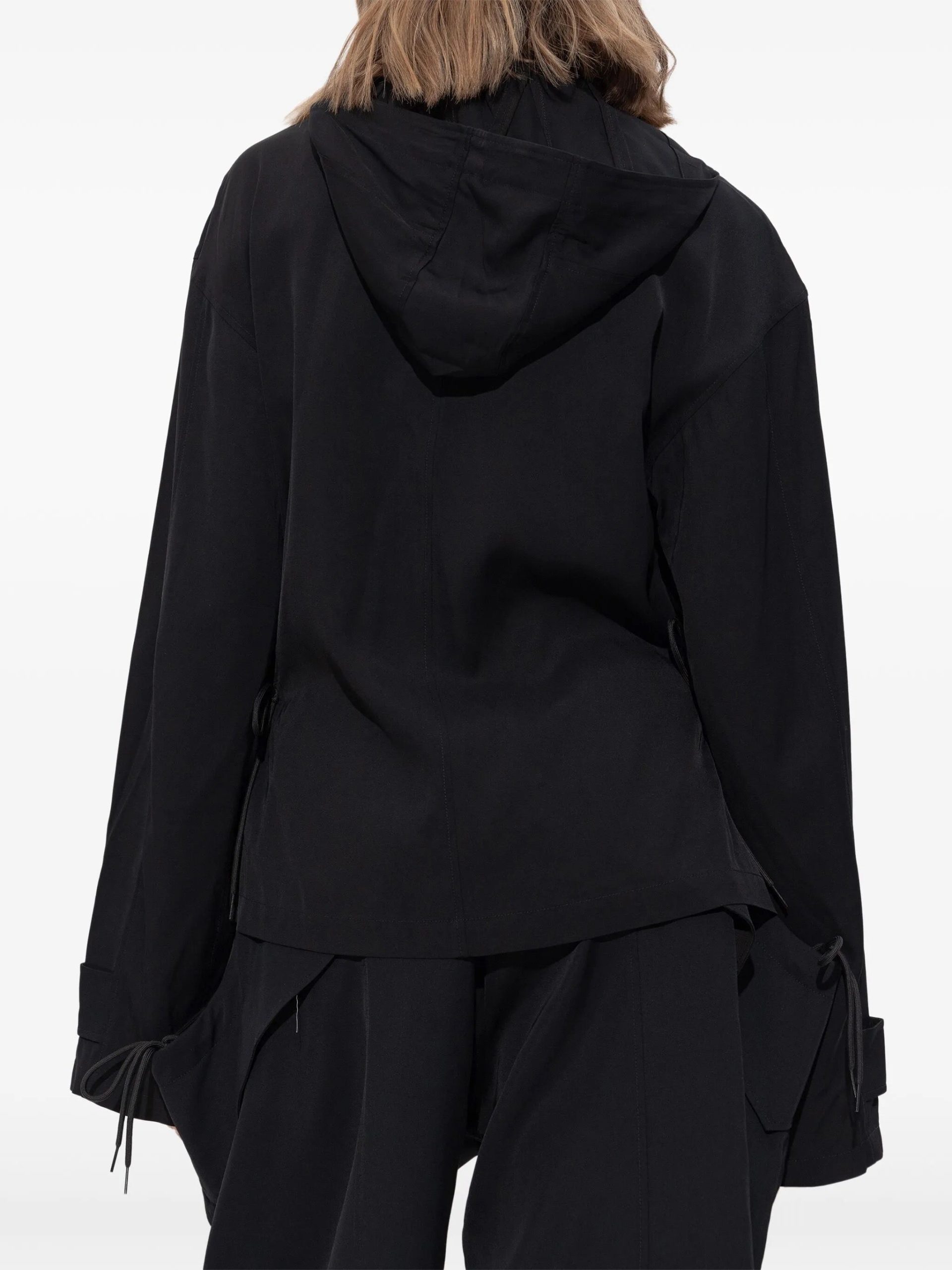 Rayon Twill Hooded Top in Black